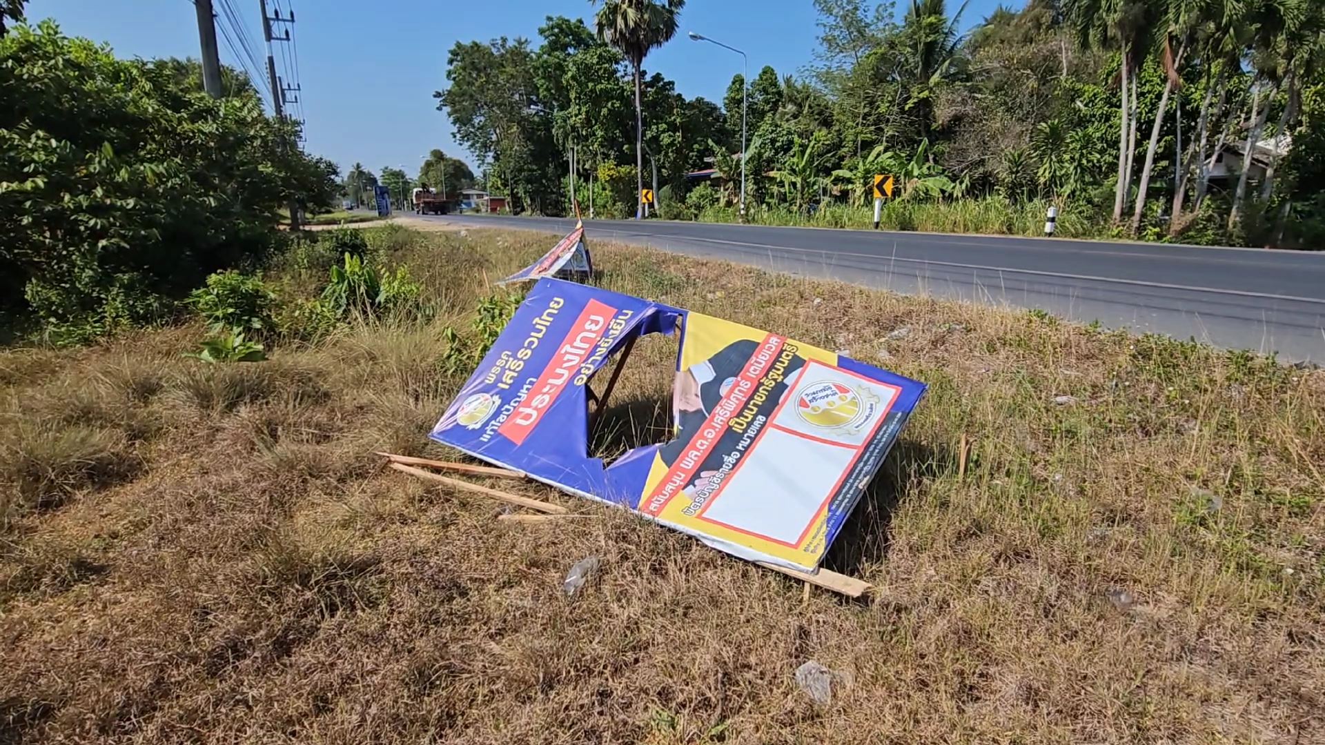 และพรรคการเมืองอยู่ในสภาพถูกพังยับเยิน มีทั้งถูกกรีด ถูกฟันจนเสียหายอย่างหนัก เช่นสาย 401 เมืองนครศรีธรรมราช มุ่งหน้าอำเภอขนอม เส้นทางระหว่างอำเภอเมือง อำเภอท่าศาลา อำเภอขนอม ผ่านเขตเลือกตั้งที่ 2 เขตเลือกตั้งที่ 9 และเขตเลือกตั้งที่ 10 ตลอดเส้นทางมากกว่า 30 กิโลเมตร มีป้ายถูกทำลายจำนวนมาก