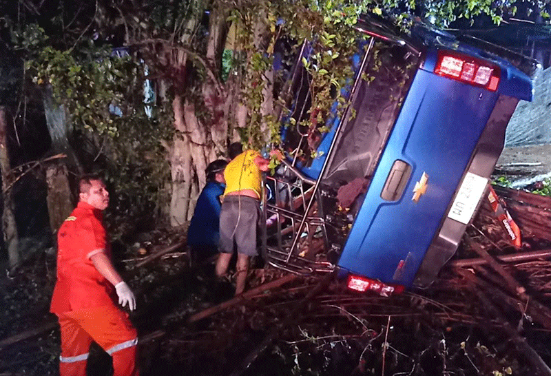 ฝนตกหนักถนนลื่นกระบะชนเสาไฟเจ็บ2