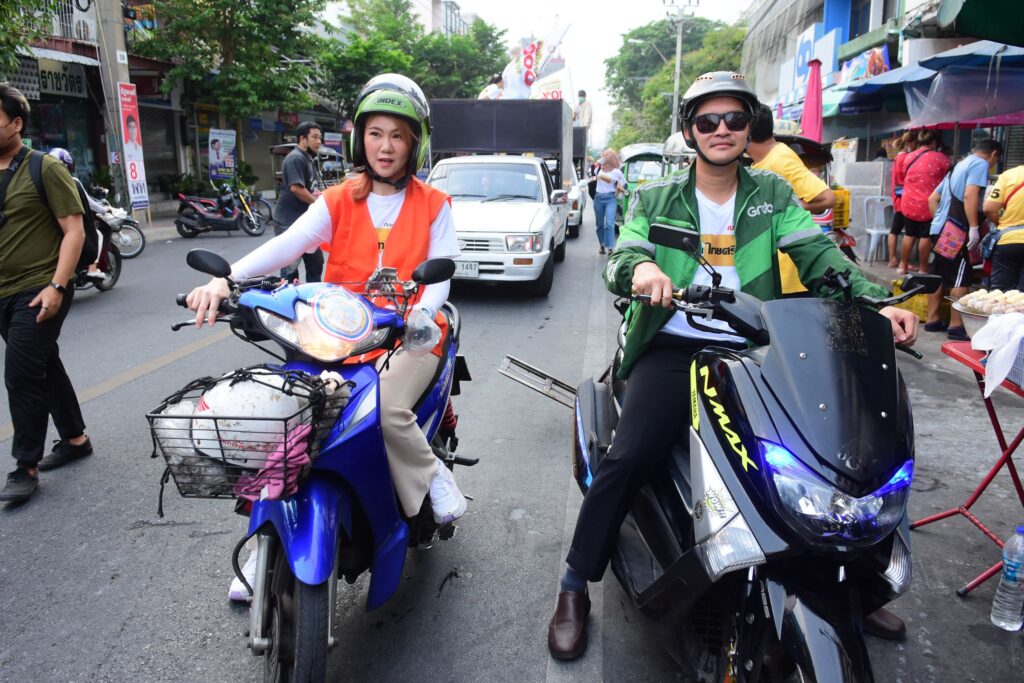 ให้ไปสู่จุดหมายตามที่ประชาชนต้องการ ซึ่งแสดงให้เห็นว่า พรรคไทยศรีวิไลย์จะไม่ทอดทิ้งพวกพี่ๆ วินมอเตอร์ไซด์กับไรเดอร์ โดยมีนโยบายที่รองรับเพื่อให้พี่วินกับไรเดอร์สามารถประกอบอาชีพได้อย่างสมศักดิ์ศรี โดยจะต้องมีเงินเหลือทั้งในชีวิตประจำวันเพื่อนำมาจับจ่ายและเก็บออม และมีหลักประกันให้ครอบครัวในเวลาไม่คาดคิด ทั้งนี้ เมื่อวันศุกร์ที่ผ่านมา ผมขี่มอเตอร์ไซด์พามาดามอ้อมาจ่ายตลาดที่ตลาดบางซ่อน นั่นถือเป็นบทบาทของคนรักที่ดีที่ฝ่ายชายจะต้องอำนวยความสะดวกกับฝ่ายหญิง แต่วันนี้ ผมกับมาดามอ้อ เรามาขี่มอเตอร์ไซด์ลงพื้นที่ด้วยกัน ถึงแม้จะแตกต่างกันในเรื่องของประเภทการโดยสารก็ตาม