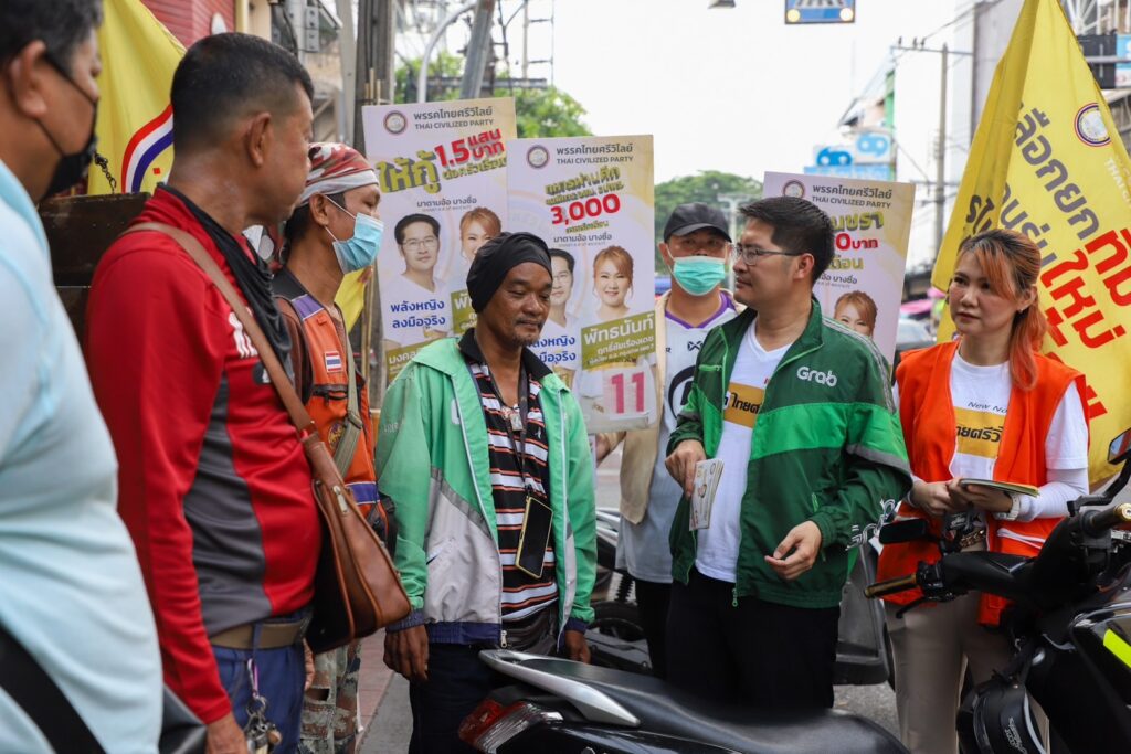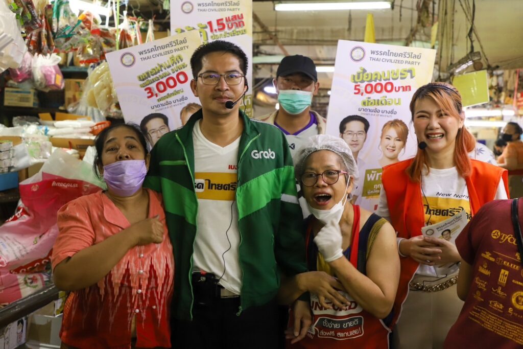 ผู้สื่อข่าวรายงานว่า นายมงคลกิตติ์ สุขสินธารานนท์ ผู้สมัคร ส.ส.บัญชีรายชื่อ และหัวหน้าพรรคไทยศรีวิไลย์ พร้อมด้วย นางสาวพัทธนันท์ ฤทธิ์ชัยเรืองเดช หรือ มาดามอ้อ ผู้สมัคร ส.ส. กรุงเทพมหานคร เขต 7 (เขตบางซื่อ และเขตดุสิต เฉพาะแขวงถนนนครไชยศรี) หมายเลข 11 ลงพื้นที่หาเสียงย่านตลาดราชวัตร เขตดุสิต ทั้งนี้ นายมงคลกิตติ์ ได้สวมบทบาทเป็นไรเดอร์ของแกร็บ