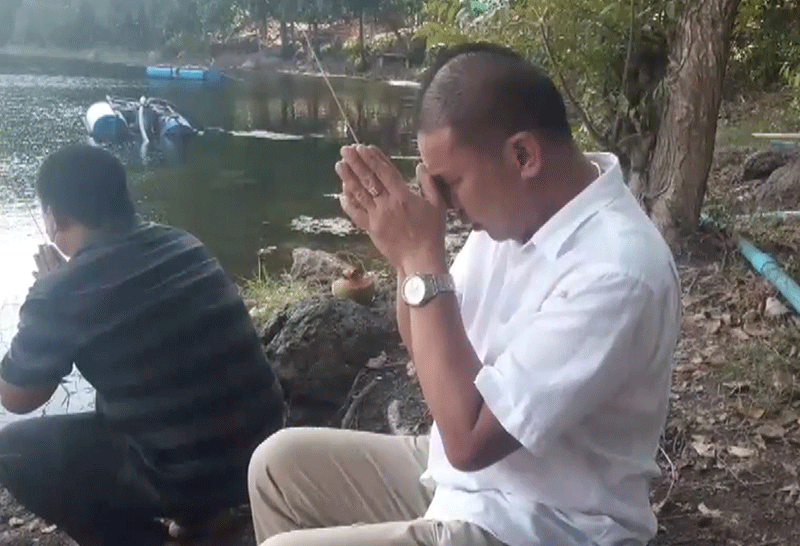 โดยก่อนที่จะมีการเคลื่อนย้ายศพจากวัดหนองดี ตำบลทุ่งสง อำเภอนาบอน จังหวัดนครศรีธรรมราช ครอบครัวของผู้เสียชีวิต ได้เดินทางไปยังบึงทะเลสองห้องสถานที่เกิดเหตุ และได้นิมนต์พระทะนง สิริธโร พระสงฆ์วัดท่ายาง เป็นผู้นำครอบครัวของผู้ตายประกอบพิธีเชิญวิญญาณจากที่เกิดเหตุกลับบ้านไปทำพิธีทางศาสนายังจังหวัดชลบุรี โดยมีขั้นตอนเริ่มจากการสักการะสิ่งศักดิ์สิทธิ์ประจำทะเลสองห้อง และทำการขอขมาต่อเจ้าที่เจ้าทาง และขอเชิญดวงวิญญาณจากที่เกิดเหตุเดินทางไปพร้อมกับร่างตามความเชื่อ