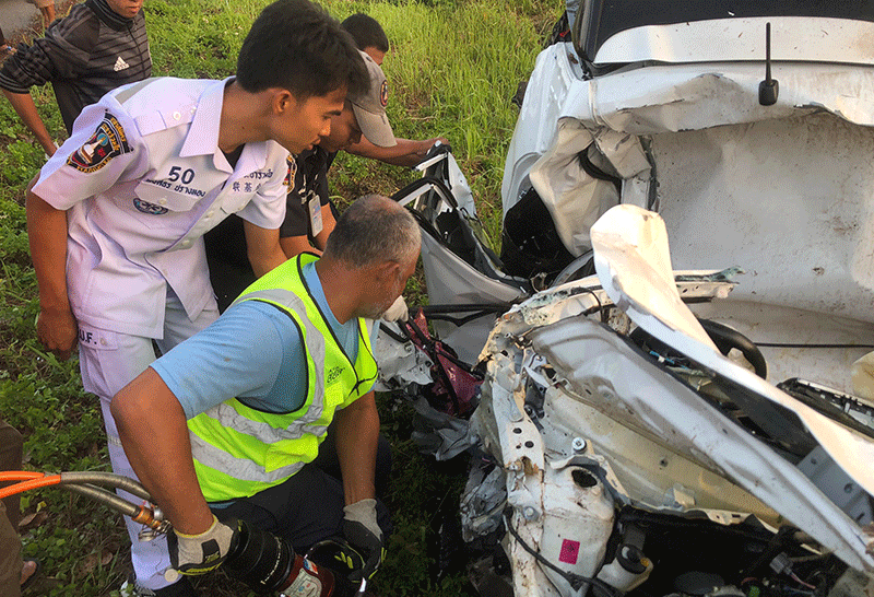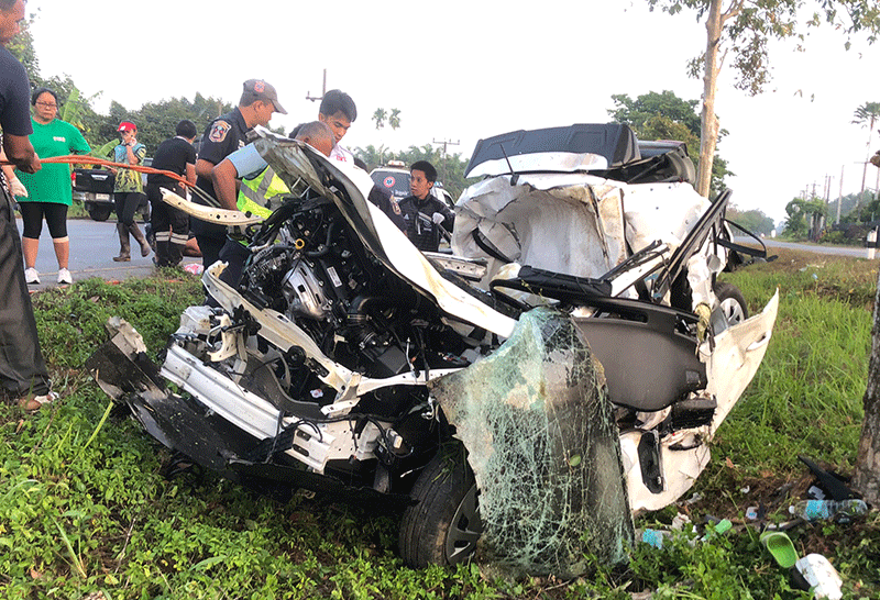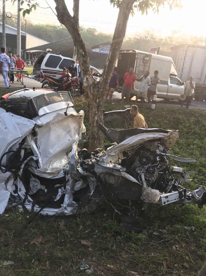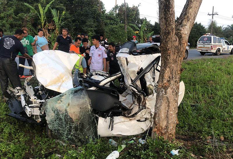หนุ่มนครศรีฯขับเก๋งเสียหลักชนต้นไม้ดับ