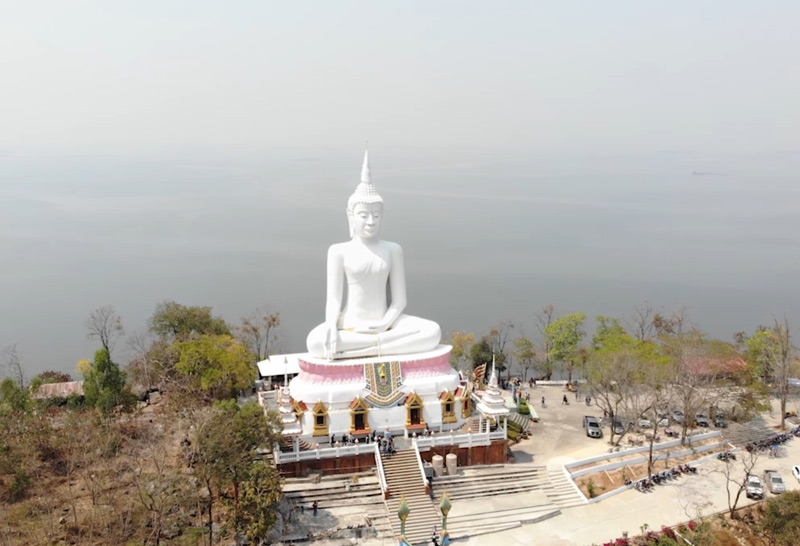 วัดพระบาทภูพานคำ จ.ขอนแก่น ตั้งอยู่บนไหล่เขาภูพานคำ ติดกับเขื่อนอุบลรัตน์ มีพระพุทธรูปหลวงพ่อขาว ประดิษฐานอยู่บนฐานดอกบัวสีชมพู สูงประมาณ 14 เมตร ประดิษฐานอยู่บนยอดเขาภูพานคำ โดยที่นักท่องเที่ยวสามารถนำรถยนต์ขึ้นไปได้ถึงด้านบนยอดเขา หรือหากมีเรี่ยวแรงก็สามารถเดินขึ้นบันไดนาค 1,049 ขั้น ขึ้นไปด้านบนได้อีกด้วย