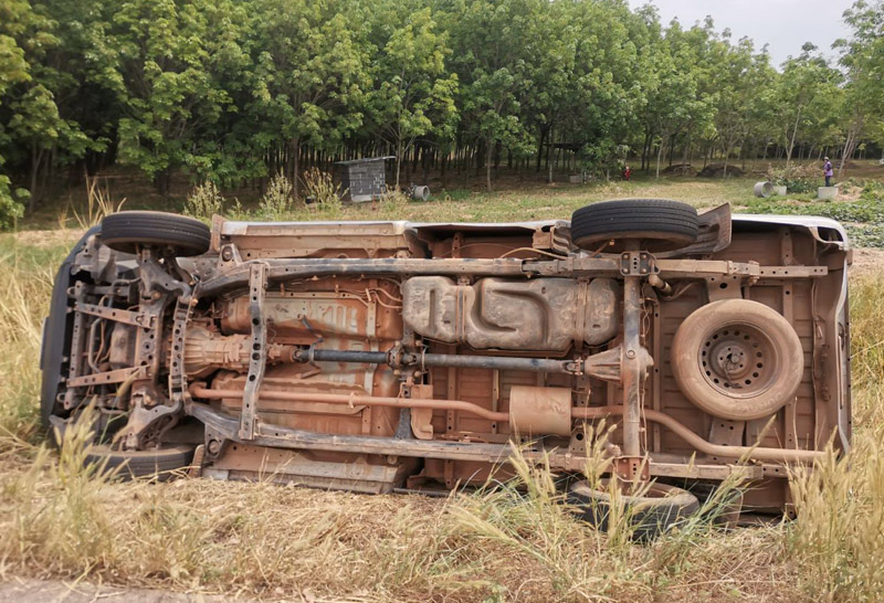 หนุ่มขับรถกระบะส่งของพลิกคว่ำตกถนนหลายตลบ ไม่ได้รับบาดเจ็บ เชื่อปาฏิหาริย์รูปหล่อหลวงพ่อเงิน วัดบางคลาน