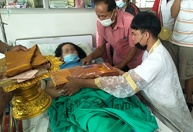 โดยทางโรงพยาบาลโนนสูงได้อำนวยความสะดวกให้กับทางญาติมีการจัดเตรียมสถานที่ให้เพื่อให้แม่ได้มีโอกาสตัดผมลูกชายและมีโอกาสให้ลูกชายกราบขอขมาก่อนที่แม่จะหมดลมหายใจ ทำให้ภาพนี้ เป็นภาพที่ใครเห็นแล้วอดสงสารและอดที่จะร้องไห้ไม่ได้เพราะสงสารลูกชายและสงสารแม่ที่ไม่มีโอกาสได้เข้าโบสถ์ร่วมพิธีอุปสมบทกับลูกชาย