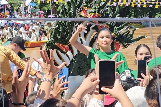 ปชช.-นทท.ฝ่ากระแสน้ำท่วม แห่ร่วมประเพณีอุ้มพระดำน้ำแน่น ปู ไปรยา ลุนด์เบิร์ก” ดาราสาวนักแสดงร่วมงานด้วย