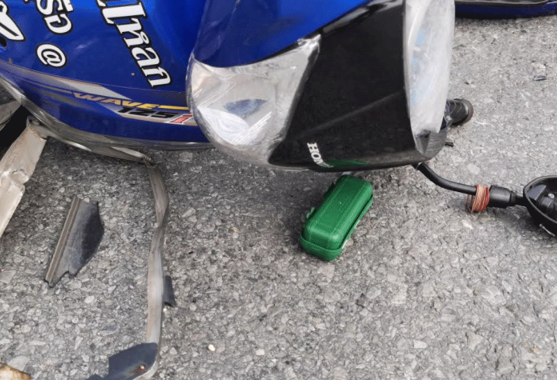 รถชน จยย.บนถนนชลบุรี คนขี่ทิ้งรถวิ่งหลบหนี พบกระเป๋าตกข้างรถเจอยาไอซ์ เร่งล่าคนขับมาดำเนินคดี