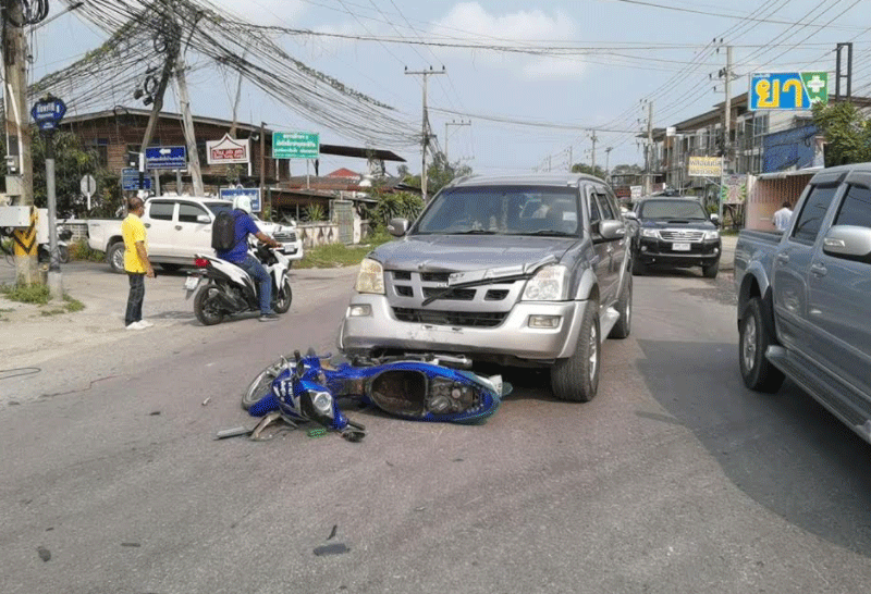 รถชนจยย.คนขี่วิ่งหนีพบยาไอซ์ตกข้างรถ