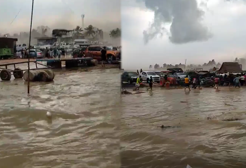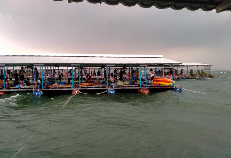 เมื่อช่วงเย็น ของเมื่อวานที่ผ่าน เฟซบุ๊ก “ป้อมสาย บันเทิง” ได้โพสต์คลิป นักท่องเที่ยวจำนวนมาก ต่างเก็บของ หอบลูกจูงหลาน วิ่งหนีตายกันอย่างจ้าละหวั่น หลังเกิดพายุพัดถล่ม ท้องฟ้ามืดครึ้ม ลมแรง น้ำซัดแรง ซึ่งนักท่องเที่ยวส่วนใหญ่ จะมากันแบบครอบครัว นำอาหาร เครื่องดื่ม มาดื่มกินกันบนแพ