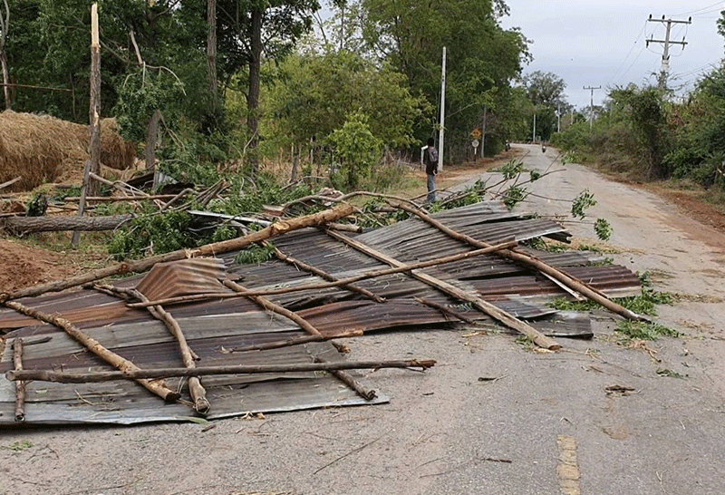 พายุฤดูร้อนถล่ม 9 อำเภอ เสาไฟฟ้าโค่นล้มบ้านเรือนเสียหายกว่า 200 หลัง – ผวจ.ศรีสะเกษ สั่งทุกอำเภอเร่งสำรวจ