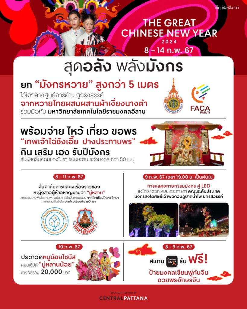 นอกจากนี้ ยังจัดกิจกรรมเอาใจสายมู ได้ร่วมขอพรโชคลาภจาก “เทพเจ้าไฉ่ซิงเอี๊ย ปางประทานพร” เพื่อความเป็นสิริมงคลแก่ชีวิต , สแกน Central Life X รับป้ายมงคลอวยพรอักษรจีน ฟรี! และนำเมนูอาหารผลไม้มงคลกว่า 50 เมนู – ของมงคล – ชุดกี่เพ้า – ใบชา – ขนมหวาน มาให้เลือกซื้อสำหรับเป็นของไหว้ และได้อิ่มเอมกับความหอมอร่อย