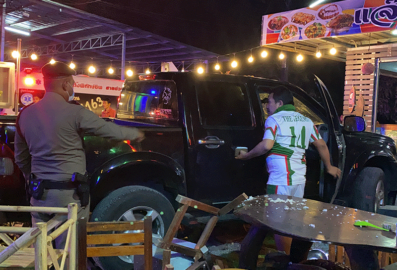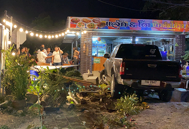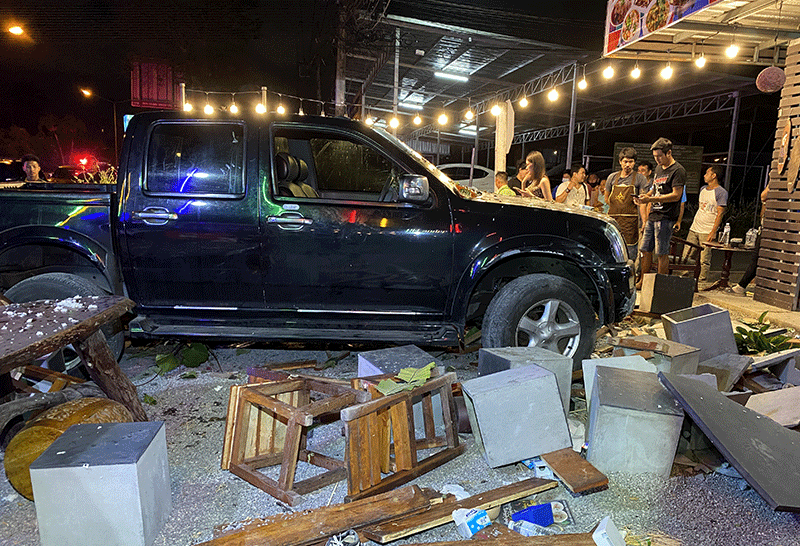ภาพวงจรปิดนาทีกระบะพุ่งชนร้านอาหารลูกค้าเจ็บ5
