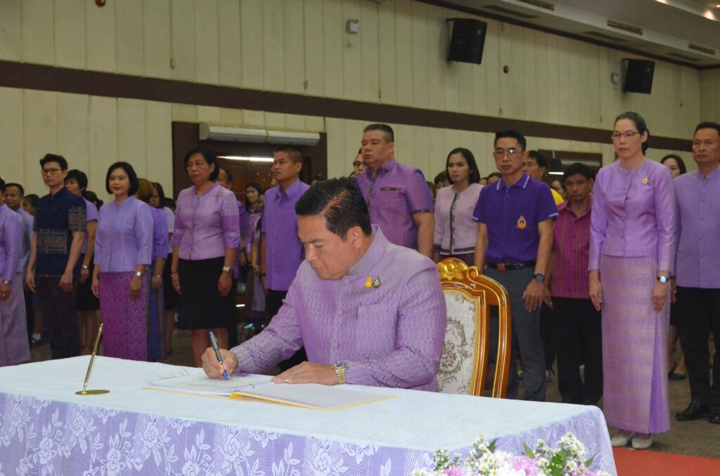 จากนั้นนำทุกภาคส่วนลงนามถวายกำลังใจ และน้อมสำนึกในพระมหากรุณาธิคุณของสมเด็จพระกนิษฐาธิราชเจ้า กรมสมเด็จพระเทพรัตนราชสุดาฯ สยามบรมราชกุมารี ที่ทรงบำเพ็ญพระราชกรณียกิจอย่างเหน็ดเหนื่อยมาโดยตลอด อีกทั้งยังรักและเทิดทูนสถาบันพระมหากษัตริย์เหนือสิ่งอื่นใด พสกนิกรชาว จ.กาฬสินธุ์ทุกหมู่เหล่าจึงได้ร่วมกันแสดงพลังประกาศขอปกป้อง และแสดงออกถึงความจงรักภักดีต่อสถาบันพระมหากษัตริย์อันเป็นที่รักยิ่งในครั้งนี้