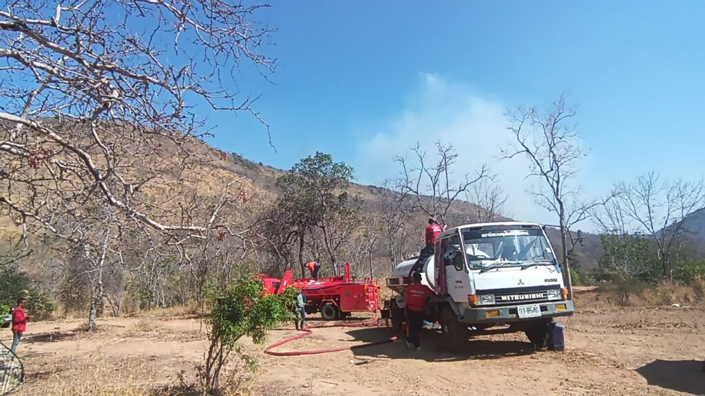 ผู้สื่อข่าวรายงานความคืบหน้ากรณีเกิดไฟป่าไหม้เขาคอกช้าง ซึ่งเป็นพื้นที่อุทยานแห่งชาติ รอยต่อระหว่าง ต.ครบุรีใต้ และ ต.จระเข้หิน อ.ครบุรี จ.นครราชสีมา เมื่อช่วงเย็นวันที่ 21 กุมภาพันธ์ 2567 ที่ผ่านมา สร้างความเสียหายให้กับพื้นที่ป่าไปแล้วกว่า 400 ไร่ ล่าสุดเช้าวันนี้ (22 กุมภาพันธ์ 2567) เจ้าหน้าที่ศูนย์เฝ้าระวังไฟป่า ซึ่งบูรณาการกำลังร่วมกันระหว่างเจ้าหน้าที่อุทยานแห่งชาติทับลาน สถานีควบคุมไฟป่าทับลาน ฝ่ายปกครองและผู้นำชุมชนอำเภอครบุรี กว่า 30 นาย ยังคงต้องเข้าทำการดับไฟอย่างต่อเนื่อง เนื่องจากบริเวณสันเขายังคงมีไฟไหม้ลุกลามเพิ่มเติม แต่ในส่วนบริเวณผาด้านทิศใต้ของภูเขา เจ้าหน้าที่สามารถควบคุมไฟเอาไว้ได้แล้ว ขณะเดียวกันได้เกิดไฟป่าขึ้นอีกจุดที่บริเวณตีนเขากะบุดที่อยู่ติดกัน ทางเจ้าหน้าที่จึงต้องแบ่งกำลังส่วนหนึ่งเข้ากับระงับไฟ เบื้องต้นสามารถควบคุมเพลิงเอาไว้ได้แล้ว
