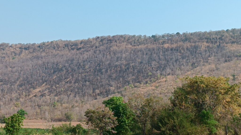 วันนี้ (24 กุมภาพันธ์ 2567) เจ้าหน้าที่อุทยานแห่งชาติทับลาน พร้อมด้วย เจ้าหน้าที่สถานีควบคุมไฟป่าทับลาน , สถานีควบคุมไฟป่าสำนักบริหารพื้นที่อนุรักษ์ที่ 7 นครราชสีมา , ฝ่ายปกครอง เครือข่ายอาสาสมัครเฝ้าระวังไฟป่า และจิตอาสาอำเภอครบุรี จ.นครราชสีมา กว่า 30 ชีวิต ยังต้องเร่งดับไฟป่าบริเวณเขาคอกช้าง เขตอุทยานแห่งชาติทับลาน ต่อเนื่องเป็นวันที่ 3 แล้ว ซึ่งเป็นพื้นที่อยู่ระหว่างรอยต่อ ต.จระเข้หิน และ ต.ครบุรีใต้ อ.ครบุรี จ.นครราชสีมา แม้ว่าวันนี้จะเป็น “วันรณรงค์ให้ปลอดควันพิษจากไฟป่า” ก็ตาม และตอนนี้ สถานการณ์ยังไม่คลี่คลายทั้งหมด