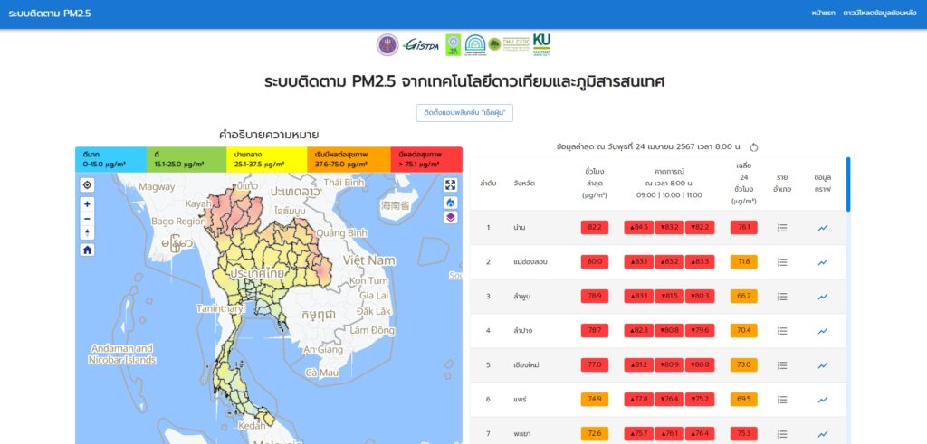 กระทรวงการอุดมศึกษา วิทยาศาสตร์ วิจัยและนวัตกรรม (อว.) โดยสำนักงานพัฒนาเทคโนโลยีอวกาศและภูมิสารสนเทศ (องค์การมหาชน) หรือ GISTDA ร่วมกับสำนักงานการวิจัยแห่งชาติ, กรมควบคุมมลพิษ, มหาวิทยาลัยเกษตรศาสตร์ และมหาวิทยาลัยเชียงใหม่ เกาะติดสถานการณ์ฝุ่น PM 2.5 แบบรายชั่วโมง ด้วยข้อมูลจากดาวเทียมผ่านแอปพลิเคชั่น “เช็คฝุ่น”