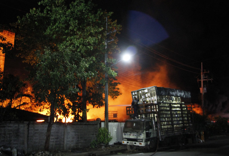 ที่เกิดเหตุเป็นโรงงานรีไซเคิลนำถังน้ำมันเก่ามาล้างและทำสีใหม่ เนื้อที่ 700 ตร.ว. ภายในเก็บถังน้ำมันขนาด 200 ลิตรและปั๊บสังกะสีไว้เต็มพื้นที่ พบเพลิงได้ลุกไหม้อย่างรุนแรงประกอบกับมีเสียงระเบิดเกิดขึ้นตลอดเวลา แสงเพลิงได้ลุกไหม้อย่างรวดเร็วเพราะภายในมีน้ำมันที่ค้างในถังน้ำมันที่รับซื้อมาและมีน้ำยาล้างถังอยู่ด้านใน เจ้าหน้าที่ดับเพลิงระดมฉีดน้ำเพื่อสกัดเพลิงไม่ให้ลุกลามพื้นที่ใกล้เคียง แต่กระแสลมแรงได้พัดผ่านประกอบกับจุดเกิดเหตุไม่มีแหล่งน้ำธรรมชาติและประปาหัวแดง ทำให้รถดับเพลิงต้องออกไปสูบน้ำจากด้านนอกพื้นที่ไกลกว่า 2 กม. ก่อนจะใช้เวลาประมาณ 2 ชม. จึงควบคุมเพลิงได้ เบื้องต้นมีผู้ได้รับบาดเจ็บเล็กน้อย1 ราย เนื่องจาก ถูกแรงระเบิดของถังน้ำมัน 200 ลิตรกระเด็นใส่