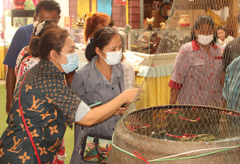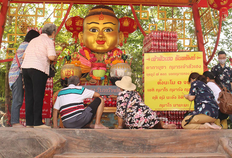 ประชาชนกราบไหว้สิ่งศักดิ์สิทธิ์ แห่ส่องเลขดังอ่างน้ำมนต์เจ้าสัวเฮง จังหวัดปทุมธานี คึกคัก