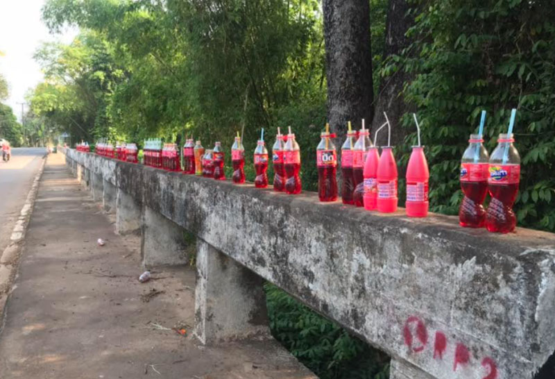ก่อนวันหวยออก พบที่ราวสะพานคลองยางถนนสายนาดี-บ้าน-บ้านเสี้ยว อ.นาดี จ.ปราจีนบุรี และ ที่ในศาลเจ้าพ่อหลวงอินทร์,หลวงไกร,หลวงราช ,เจ้าพ่อกุ้งกั้งวังน้ำเขียว ม.4 ต.นาดี อ.นาดี จ.ปราจีนบุรี ชาวบ้านต่างพากันไปแก้บนเจ้าพ่อฯ ขอโชคลาภ ที่ศาลซึ่งชาวบ้านศรัทธานับถือสืบทอดกันมากว่าร้อยปี มีความเชื่อคำว่าศาลเจ้าพ่อแห่งนี้ใครบนบานศาลกล่าวอะไรจะได้สิ่งนั้น โดยมักบนบานด้วยน้ำแดงนำไปวางที่ราวสะพานจนเต็ม-ล้น หรือ วางไว้ที่ศาลนับ 200 -300 ขวดแต่ละคนจะบนบานศาลกล่าวต่างกันไปบางคนขอโชคลาภ บางคนขอโชคทางด้านหน้าที่การงานให้สมหวัง หลังจากที่บนแล้วก็จะได้สมความปรารถนาที่บนไว้ จึงนำสิ่งของที่บนไว้มาแก้บนเพื่อความเป็นศิริมงคล แก่ตัวเองและครอบครัวและความเจริญก้าวหน้าในหน้าที่การงาน บางคนขอโชคลาภและก็ได้ตามความต้องการเช่นกัน หากได้โชคลาภจากศาลเจ้าพ่อแห่งนี้แล้วจะซื้อน้ำแดงมาถวายให้ จะเห็นได้ว่านำแดงนั้นจะตั้งถวายไว้บนราวสะพานยาวกว่า 10 เมตร มากกว่า 200-300 ขวดวางเรียงราย บนราวสะพานเนื่องจากผู้ที่บนบานไม่สะดวกจะเดินลงมาที่ศาลที่อยู่ในลำห้วยคลองยางซึ่งตลิ่งสูงชัน รวมถึงรถที่วิ่งอยู่บนถนนสัญจรผ่านไปมาระหว่างหมู่บ้านจะบีบแตรเรียกให้เจ้าพ่อช่วยปกปักรักษาให้เดินทางแคล้วคลาดปลอดภัยถึงที่หมายทั้งไปและกลับ