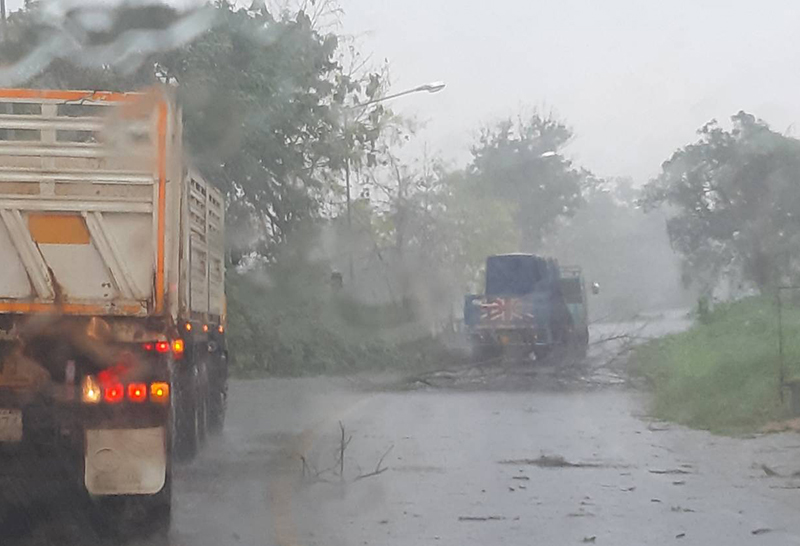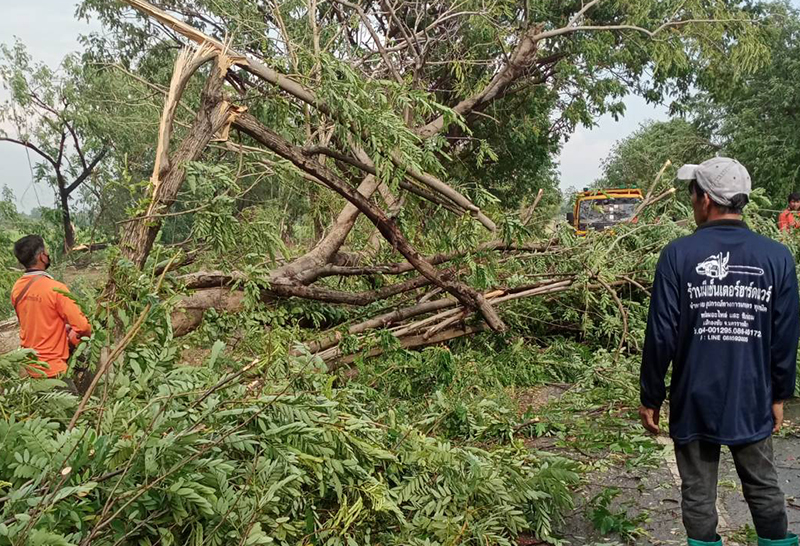 พายุฤดูร้อน พัดถล่มโคราช ทำต้นไม้ใหญ่หักโค่นขวางถนนทับรถชาวบ้าน