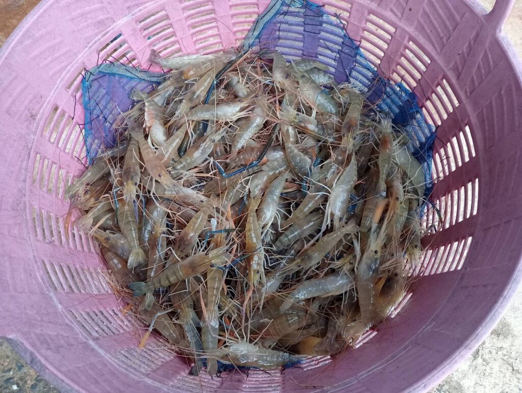 ขณะเดียวกันก็ระดมแรงงานลงสำรวจ เพื่อตรวจเช็คปริมาณกุ้งในบ่อเป็นประจำ โดยการใช้อวนลากและบางคนจับกุ้งจำหน่ายให้หมด ล้างบ่อ แล้วตากบ่อให้แห้ง ป้องกันปลาหมอคางดำจะบุกรุกหลุดรอดเข้ามาพื้นที่ จับกุ้งก้ามกรามกินหมด และเข้ามาขยายพันธุ์เหมือนจังหวัดอื่นๆ