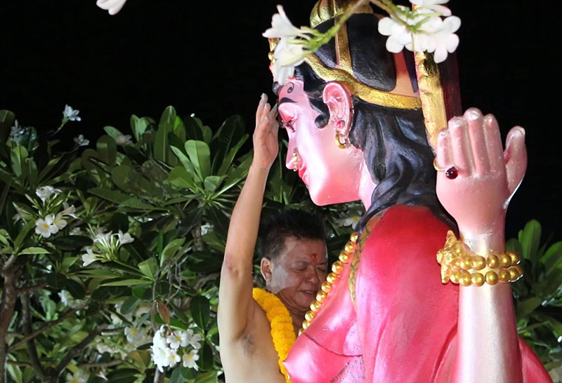 สมาชิกหมู่บ้านเสื้อแดง 4 ภาค นำโดยนางนิตยา นาโล อดีตประธานหมู่บ้าน เสื้อแดง ภาคอีสาน หรือ “นิตยานักสู้ปอสี่” นำของเซ่นไหว้มาบวงสรวงสิ่งศักดิ์สิทธิ์ที่เทวาลัยศิวะมหาเทพ ขอนแก่น หรือ วัดแขก ขอนแก่น ซึ่งตั้งอยู่ริมถนนเลี่ยงเมืองขอนแก่น-กาฬสินธุ์ อ.เมืองขอนแก่น เพื่อขอพรองค์พระศิวะ เทพองค์สำคัญของศาสนาฮินดูเสริมบารมีให้ไทยผ่านพ้นวิกฤติ และขอให้ พล.อ.ประยุทธ์ จันทร์โอชา นายกรัฐมนตรี ผ่านพ้นจากการชุมนุมขับไล่รัฐบาล โดยมีสมาชิกเสื้อแดง 4 ภาคร่วมพิธีจำนวนมาก