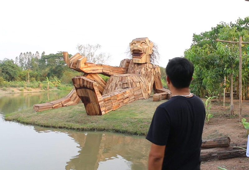 ฟาร์มคาเฟ่ใจกลางเมือง สร้าง “ไจแอนท์วู้ด” หุ่นไม้รูปคนขนาดใหญ่ที่สุดในประเทศกลางน้ำ แลนด์มาร์คแห่งใหม่ของเมืองขอนแก่น