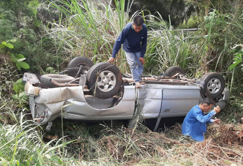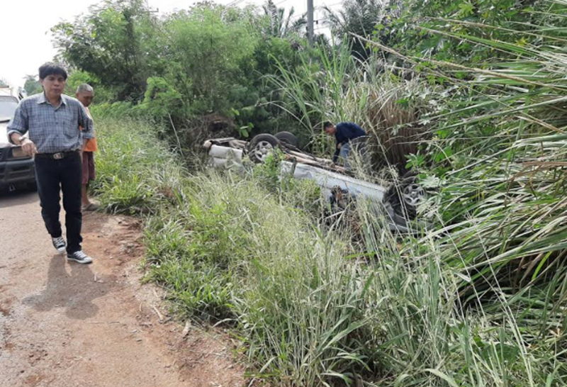 ระทึก!อดีตครูศิลปะขับกระบะเหยียบกระสอบทรายพลิกคว่ำ
