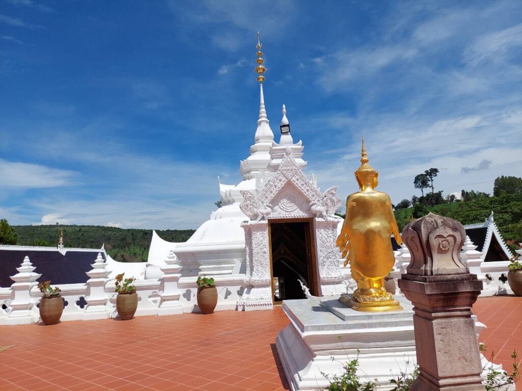 ก่อนที่จะเดินทางต่อไปย่อยอาหารเดินเที่ยวชมความสวยงามทำบุญได้ที่วัดชื่อดังอีกจุด ที่ครูเพลงชื่อดังอย่างอาจารย์สลาฯ ได้แต่งและร้องไว้ ที่วัดพระธาตุชัยภูมิ จนเรียกกันติดปากมาจนปัจจุบัน ว่าวัดพระธาตุชัยภูมิ คือลมหายใจคือชัยภูมิ