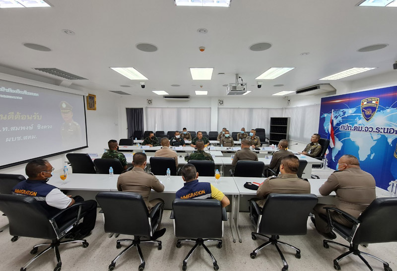 พล.ต.ท.สมพงษ์ ชิงดวง ผู้บัญชาการสำนักงานตรวจคนเข้าเมือง ลงพื้นที่ ตม.ระนอง เพื่อตรวจเยี่ยมผู้ต้องกักและประชุมติดตามสถานการณ์ กรณีมีเหตุแรงงานชาวเมียนมา ซึ่งหลบหนีเข้าเมือง 284 คน ก่อความวุ่นวายภายในอาคารผู้ต้องกักชั่วคราว อาคารตึก 5 ชั้น ด่านตรวจคนเข้าเมืองระนอง เพื่อหลบหนีกลับประเทศ แต่ไม่สามารถพังประตูเหล็กชั้นล่างหลบหนีออกมาได้