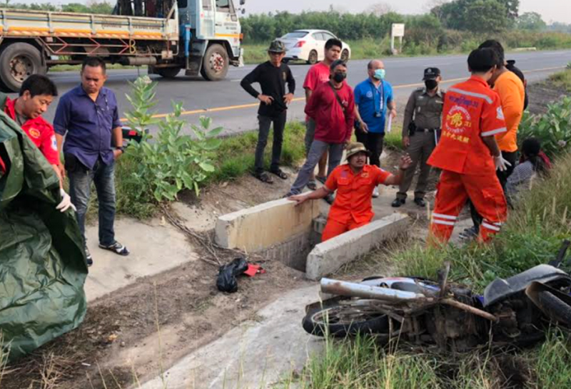 หนุ่มซิ่งจยย.ตกท่อฯดับตร.เร่งหาสาเหตุ