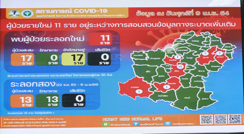 นายแพทย์นรินทร์รัชต์ พิชญคามินทร์ นายแพทย์ สาธารณสุขจังหวัด เปิดเผยว่า สำหรับผู้ป่วยทั้งหมดของจังหวัดนครราชสีมา ที่ทั้ง 17 ราย มีความเชื่อมโยงกับสถานบันเทิงในพื้นที่ กทม. ย่านรัชดา และทองหล่อ รวมทั้งสถานบันที่ จ.ชลบบุรี ซึ่งผู้ป่วยทั้งหมดพักรักษาตัวอยู่ที่ รพ.มหาราชฯ 10 ราย, รพ.ปากช่องนานา 1 ราย, รพ.เทพรัตน์ 2 ราย, รพ.ชุมพวง 2 ราย, รพ.มหาวิทยาลัยเทคโนโล