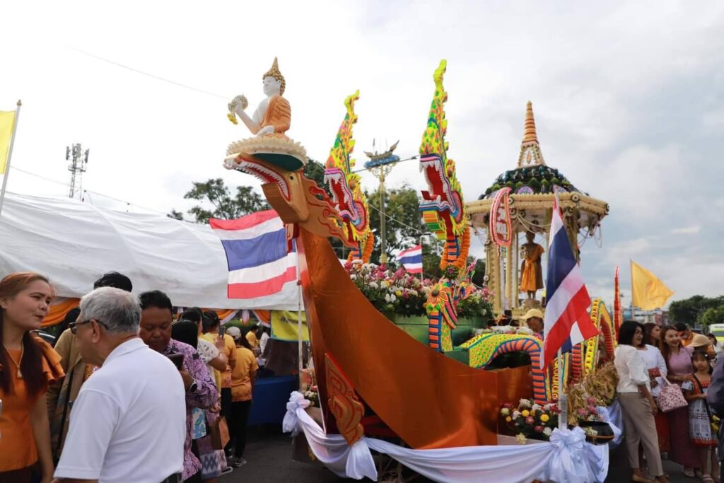 ซึ่งเป็นประเพณีที่ปฏิบัติสืบทอดกันมาตั้งแต่อดีตกาล โดยปีนี้มีขบวนเรือพระ จำนวน 10 ลำ จากวัดต่างๆ ในพื้นที่เข้าร่วมประชันตวามสวยงาม ประกอบด้วย วัดบางนรา, วัดประชาภิรมย์, วัดพรหมนิวาส, วัดกำแพง, วัดลำภู, วัดโคกโก, วัดโคกเคียน, วัดพนาสนฑ์, วัดบ้านทุ่งกง และสำนักสงฆ์นิคมเขมาราม เคลื่อนไปตามถนนสายหลักในเขตเทศบาลเมืองนราธิวาส เริ่มจากถนนภูผาภักดี เลี้ยวซ้ายตรงแยกเสด็จ ไปตามถนนจำรูญนรา เลี้ยวซ้ายเข้าถนนพิชิตบำรุง และสิ้นสุดที่สวนกรมหลวงนราธิวาสราชนครินทร์