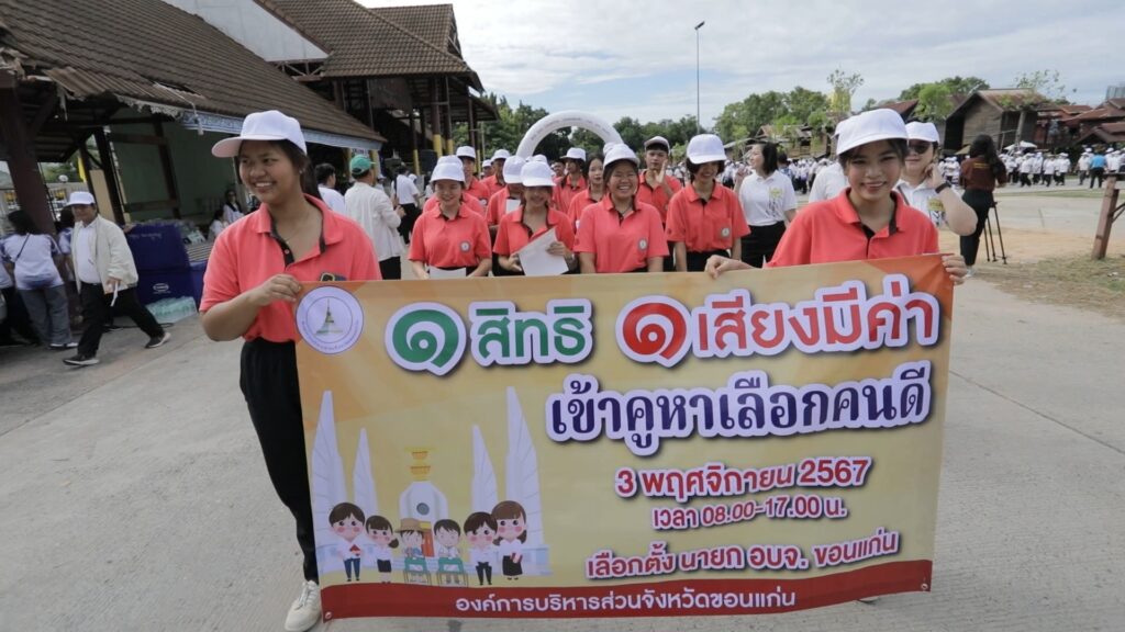 “วันนี้เราได้รณรงค์ประชาสัมพันธ์เชิญชวนพี่น้องประชาชนผู้มีสิทธิเลือกตั้งชาวขอนแก่นให้รับรู้รับทราบเกี่ยวกับการเลือกตั้งนายกองค์การบริหารส่วนจังหวัดขอนแก่น ที่จะมีขึ้นในวันที่ 3 พ.ย. ตั้งแต่เวลา 08.00 – 17.00 น. และออกมาใช้สิทธิเลือกตั้งอย่างพร้อมเพรียงกัน ด้วยการไม่ขายสิทธิ ขายเสียง ลงคะแนนเลือกตั้งอย่างอิสระเสรี รวมถึงการไม่กระทำการที่ผิดกฎหมายเลือกตั้งนายกองค์การบริหารส่วนจังหวัดขอนแก่น”