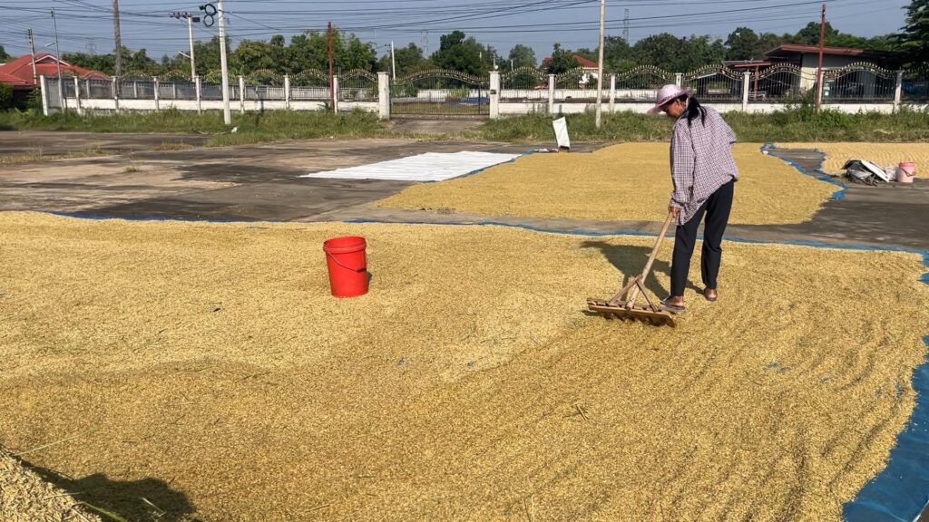 บรรยากาศการเก็บเกี่ยวข้าวนาปี ฤดูกาลผลิต 2567/68 หลังพบว่าเกษตรกรหลายพื้นที่เริ่มเกี่ยวข้าวนาปีและนำข้าวเปลือกมาตากกันแล้ว โดยเฉพาะที่ลานอเนกประสงค์ชุมชน ม.7-8บ้านหนองไฮ-โพธิ์ชัย ต.พระลับ อ.เมือง จ.ขอนแก่น พบว่าปีนี้ชาวนาได้ข้าวมากกว่าปีที่ผ่านมาแต่ราคาค่าปุ๋ยและค่ารถเกี่ยวข้าวยังมีราคาแพง วอนรัฐบาลรีบช่วยเหลือชาวนาไร่ละ1,000 บาทตามที่ได้ประกาศไว้โดยด่วน