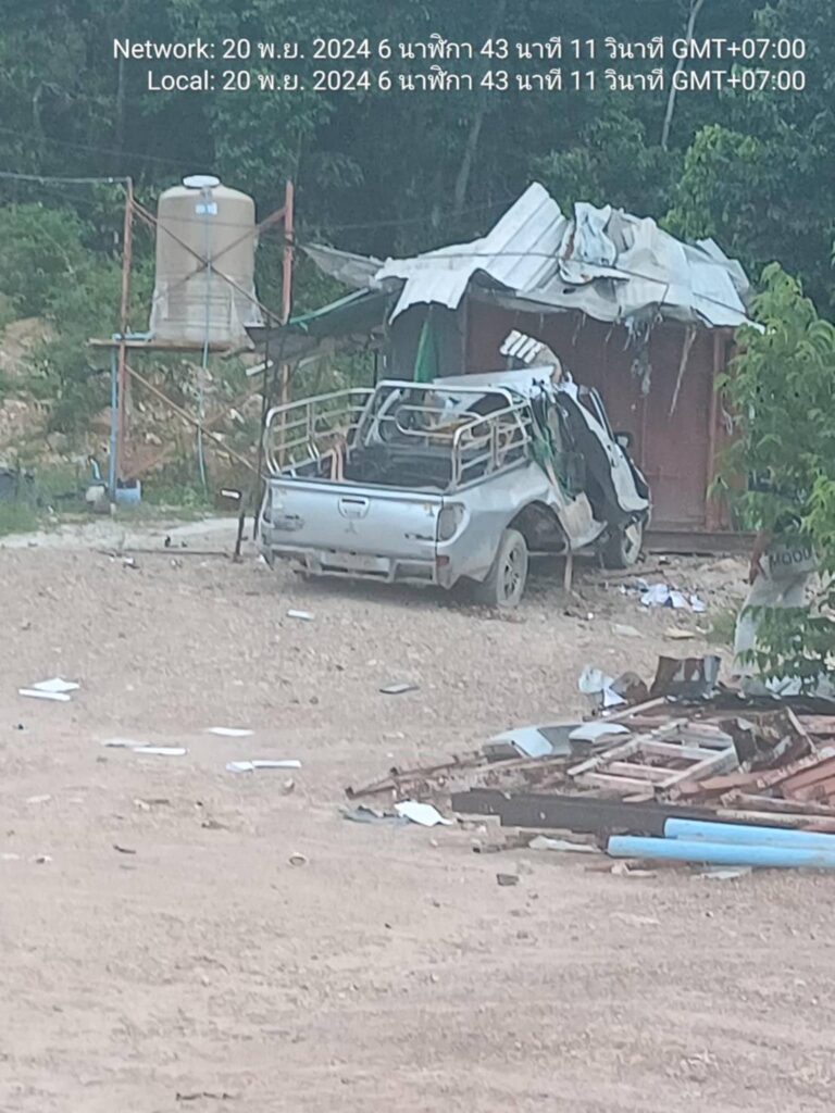 เกิดเหตุระเบิดขึ้นภายในแคมป์คนงานก่อสร้างเจ้าแม่กวนอิม ในอ.เทพา จ.สงขลา มีคนงานได้รับบาดเจ็บ3คน มีเด็กหญิง9ขวบรวมอยู่ด้วย เจ้าหน้าที่ชุดเก็บกู้วัตถุระเบิดกำลังเข้าตรวจสอบที่เกิดเหตุ พบใบปลิวข่มขู่