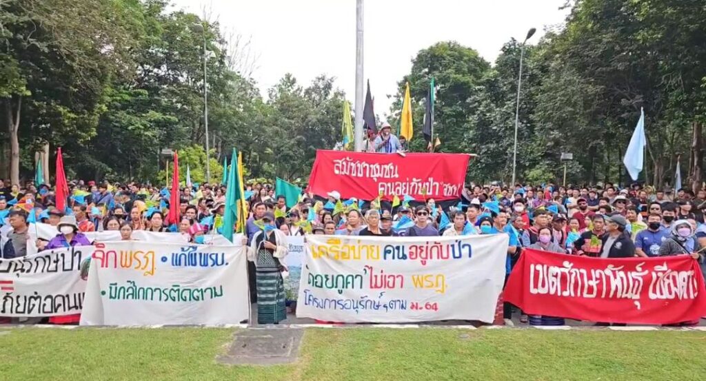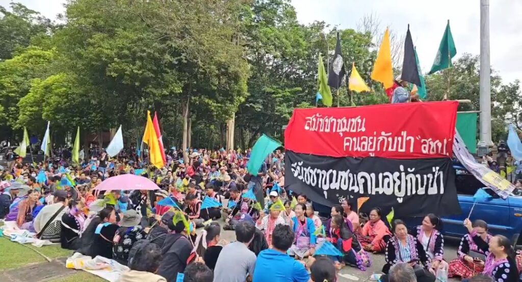 ที่บริเวณศาลากลางจังหวัดเชียงใหม่กลุ่มมวลชนสมัชชาชุมชนคนอยู่กับป่ากว่า 5,000 คน ที่มาปักหลักรอตั้งแต่วันนี้ได้ขอพบและยื่นหนังสือต่อนางสาวแพทองธาร ชินวัตร นายกรัฐมนตรีและคณะรัฐมนตรีก่อนที่การประชุมคณะรัฐมนตรีนอกสถานที่จะเริ่มขึ้นที่หอประชุมทีปังกรรัศมีโชติ มหาวิทยาลัยราชภัฏเชียงใหม่ อำเภอแม่ริม จังหวัดเชียงใหม่ เพื่อคัดค้านพระราชกฤษฎีกาที่เกี่ยวข้องกับการอนุรักษ์และการดูแลทรัพยากรธรรมชาติในอุทยานแห่งชาติและเขตรักษาพันธุ์สัตว์ป่า ที่คณะรัฐมนตรีได้มีการเห็นชอบไปเมื่อสัปดาห์ก่อนหน้านี้ โดยชี้ว่า กฎหมายดังกล่าวส่งผลกระทบอย่างหนักต่อวิถีชีวิตของชุมชนดั้งเดิม