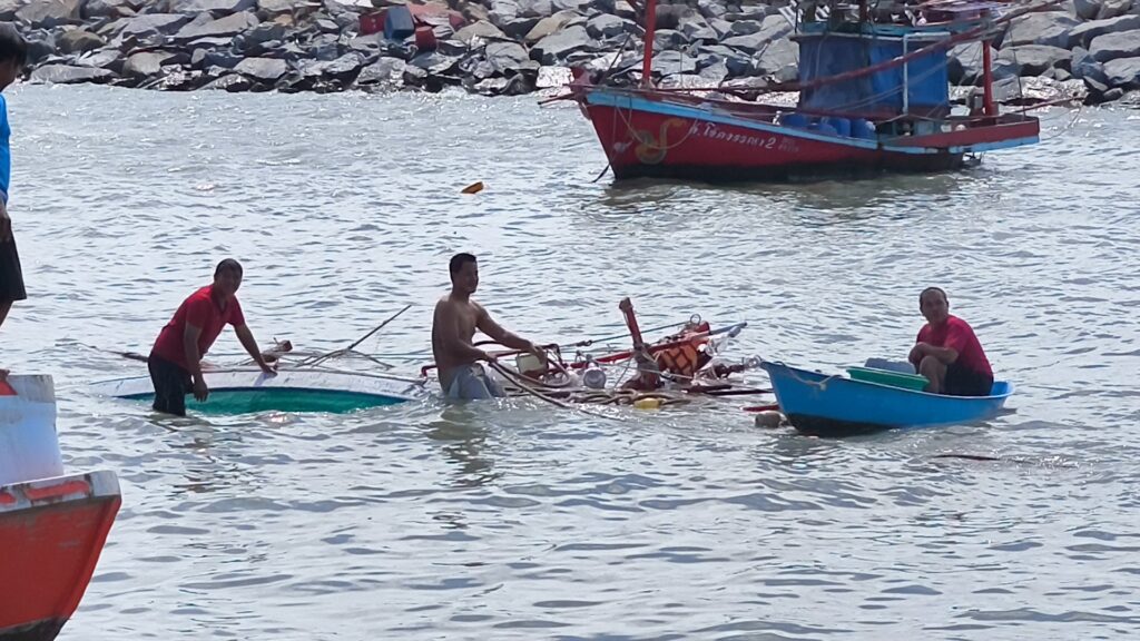 เกิดเหตุเรือประมงขนาดเล็กซึ่งเป็นเรือประมงพื้นบ้านชายฝั่งได้ถูกกระแสลมแรงพัดจนทำให้เรือล่มจมเสียหายจำนวน 1 ลำ ในพื้นที่ชายทะเล หมู่ 1 ตำบลคลองวาฬ อำเภอเมืองประจวบคีรีขันธ์ ซึ่งชาวบ้านกำลังช่วยเหลือกันในการเก็บกู้เรือเพื่อลากเข้าสู่ชายฝั่ง ขณะเดียวกันผู้สื่อข่าวได้ออกสำรวจบรรยากาศสภาพคลื่นลมบริเวณชายฝั่งทะเลพบว่ามีเรือของชาวประมงทั้งกลุ่มเรือประมงพาณิชย์ เรือบรรทุกสินค้า และกลุ่มประมงพื้นบ้านขนาดเล็กชายฝั่งจากอ่าวต่างๆ อาทิ อ่าวน้อย อ่าวคั่นกะไดอ่าวประจวบ อ่าวมะนาว และอ่าวคลองวาฬ ต่างนำเรือเข้ามาหลบคลื่นลมในอ่าวประจวบบริเวณด้านหลังเขาตาม่องล่าย เพื่อหวังให้ภูเขาบังกระแสลมไม่ให้พัดพาเรือจมทะเลเสียหาย