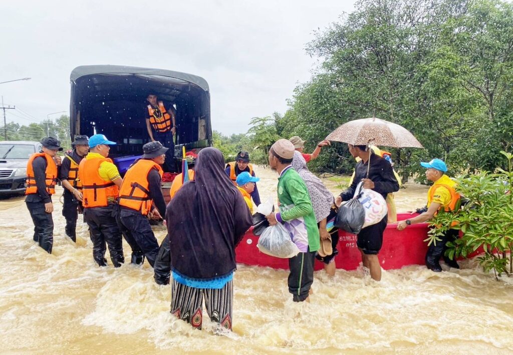 ทหารเรือลุยน้ำช่วยชาวบ้าน ขณะนราธิวาส ประสบอุทกภัย 13 อำเภอ 7 เดือดร้อน 66,374 ครัวเรือน รวม 242,355 คน
