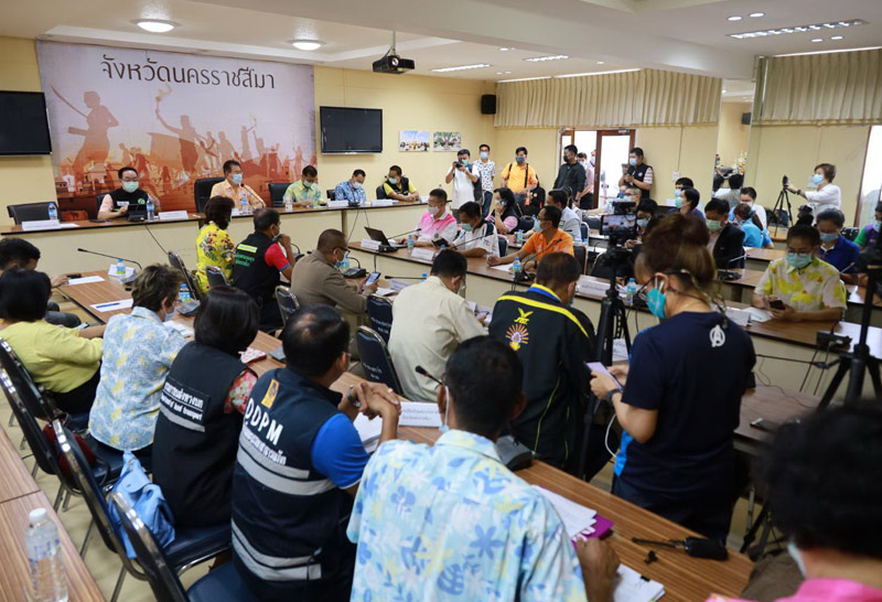 รอง ผวจ.นครราชสีมา ร่วมประธานในการประขุมคณะกรรมการโรคติดต่อจังหวัดพร้อมแถลงถึงสถานการณ์การแพร่ระบาดของไวรัสโควิด-19 ในพื้นที่จังหวัดนครราชสีมา โดยในพื้นที่พบผู้ป่วยติดเชื้อเพิ่ม 9 ราย รวมยอดผู้ป่วยสะสมทั้งสิ้น 123 รายแล้ว ซึ่งรักษาตัวที่ รพ.มหาราชฯ 49ราย รพ.เทพรัตน์ 12 ราย รพ.ปากช่อง 30 ราย รพ.มหาวิทยาลัยเทคโนโลยีสุรนารี 8 ราย รพ.พิมาย 3 ราย รพ.สูงเนิน 6 ราย รพ.ห้วยแถลง 1 ราย รพ.โนนไทย 2 ราย รพ.ป.แพทย์ 5 ราย และ รพ.ด่านขุนทด 2 ราย