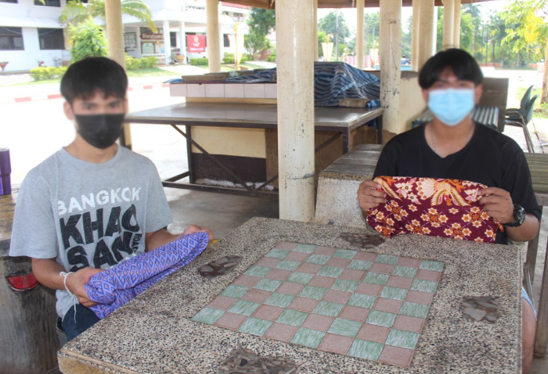 2หนุ่มสวมผ้าถุงเสื้อชั้นในวิ่งแก้บนหลังได้ใบดำ