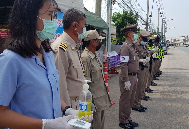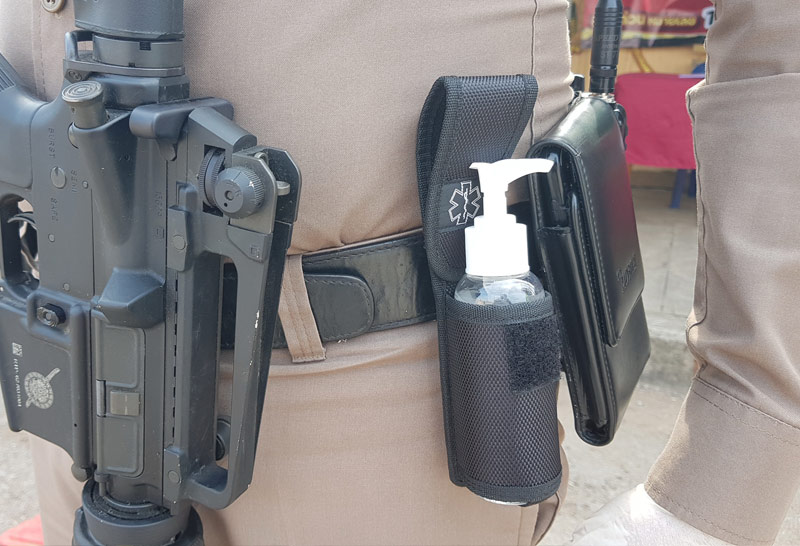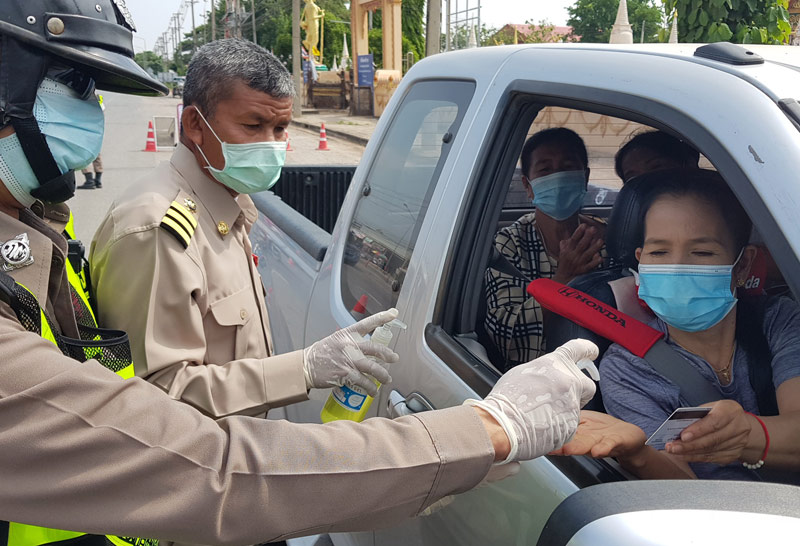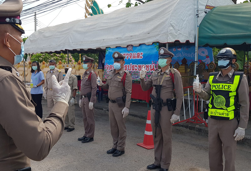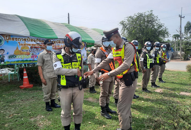 ชัยภูมิปล่อยแถวตำรวจ ดูแลประชาชนขากลับ ตรวจอาวุธพกเจลติดเอวปราบวายร้ายไวรัสโควิด-19