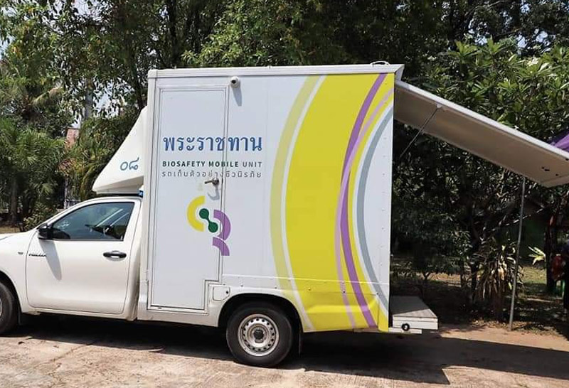 แต่อย่างใดก็ตามเพื่อให้การบริหารความเสี่ยงมีประสิทฺธิภาพสูงสุด และประชาชนที่มีความเสี่ยงต่ำที่มีความกังวล จำนวน 1,139 ราย จาก 269 ครัวเรือน ได้คลายความกังวล ได้เข้ารับการตรวจยืนยัน คณะกรรมการโรคติดต่อจังหวัดนครพนมจึงได้ส่งเจ้าหน้าที่ลงพื้นที่ตรวจคัดกรองกลุ่มบุคคลดังกล่าว แต่ด้วยการตรวจในปริมาณที่มากเช่นนี้จะต้องใช้เวลาหลายวัน เนื่องจากกำลังของเจ้าหน้าที่สาธารณสุขในพื้นที่มีไม่เพียงพอ และด้วยพระเมตตาของพระบาทสมเด็จพระเจ้าอยู่หัว ได้ทรงพระราชทานรถตรวจโรคติดเชื้อชีวนิรภัย มาให้บริการประชาชนตรวจคัดกรองเชิงรุกหาเชื้อโควิด-19 ให้ในพื้นที่ ถือเป็นพระมหากรุณาธิคุณอย่างยิ่งต่อประชาชนชาวจังหวัดนครพนม เพราะจะทำให้การค้นหาผู้สงสัยผู้ป่วยติดเชื้อในชุมชนเป็นไปได้ความรวดเร็วเพราะเข้าถึงประชาชนได้ง่าย เจ้าหน้าที่ผู้เก็บตัวอย่างมีความปลอดภัย ลดภาระการใช้อุปกรณ์ป้องกันส่วนบุคคล (ppe) ทำให้การทำงานของแพทย์และมาตรการทางการแพทย์รวดเร็วมากยิ่งขึ้น
