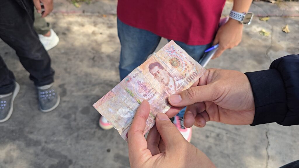 ในเวลาต่อมาผู้สื่อข่าวติดต่อไปยังผู้โพสต์คือ นายเปรมชัย ไชยวุฒิ อายุ 45 ปี ผู้จัดการปั๊มน้ำมันที่เกิดเหตุ ซึ่งตั้งอยู่ริมถนนมิตรภาพ ในเขตเทศบาลนครขอนแก่น และลงพื้นที่ไปพบ โดยผู้จัดการปั๊มน้ำมันได้นำธนบัตรปลอมดังกล่าวมาให้กับผู้สื่อข่าวดู ซึ่งพบว่ามีความแตกต่างจากของจริงอย่างมาก ทั้งสีที่เข้มจนผิดสังเกตุ แต่ธนบัตรขาดเป็น 4 ส่วนโดยมีเทปกาวใสติดเอาไว้ทั้งสองด้าน