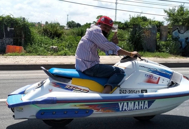 ล่าสุดได้สอบถามกับผู้โพสต์คลิปดังกล่าวคือนายอนุรักษ์ เกรียงไกรสุขเลิศ อายุ 30 ปี อาสากู้ภัย จุดจอมเทียน ทราบว่า ช่วงที่กำลังนั่งรถไปทำงานนั้น สังเกตเห็นลักษณะคล้ายกับเจ็ทสกีวิ่งอยู่บนท้องถนน ช่วงก่อนถึงแยกเทพประสิทธิ์ ด้วยความแปลกใจ จึงหยิบมือถือขึ้นมาบันทึกภาพไว้ เพราะเห็นว่าเป็นสีสันของเมืองท่องเที่ยว ซึ่งในช่วงโควิดนี้ ก็ถือว่าเป็นการคลายเคลียดให้กับคนที่พบเห็น ซึ่งตนเองก็ไม่เคยเห็นแบบนี้มาก่อน