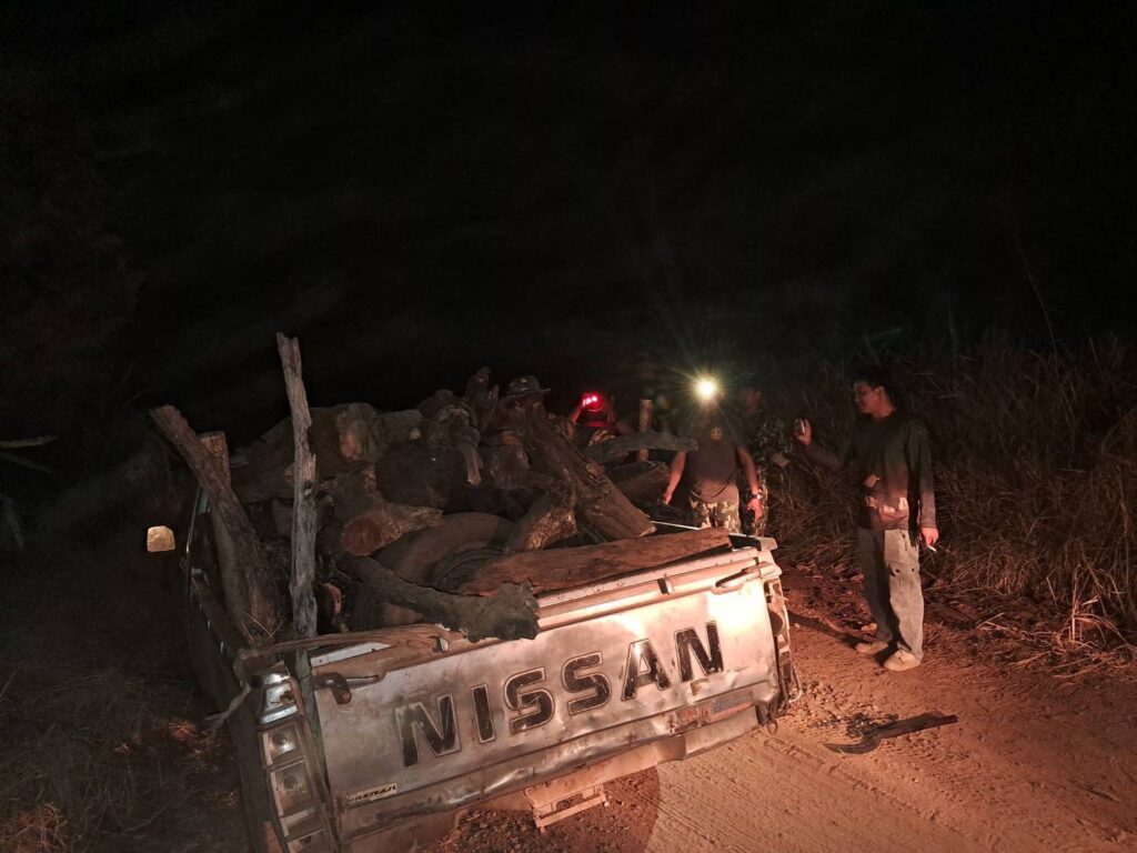 นอกจากนี้ เมื่อช่วงเวลาประมาณ 19.00 น. เจ้าหน้าที่ชุดเดียวกันนี้ ยังสามารถจับกุม นายทองอิน โสมกลาง อายุ 67 ปี ชาวบ้าน ต.ลำเพียก อ.ครบุรี จ.นครราชสีมา ได้พร้อมรถยนต์กระบะยี่ห้อนิสัน สีบอร์น ไม่ติดแผ่นป้ายทะเบียน ขณะกำลังบรรทุกไม้เต็ง จำนวน 42 ท่อน ปริมาตร 1.11 ลูกบาศก์เมตร ออกมาจากป่าเขาภูประดู่