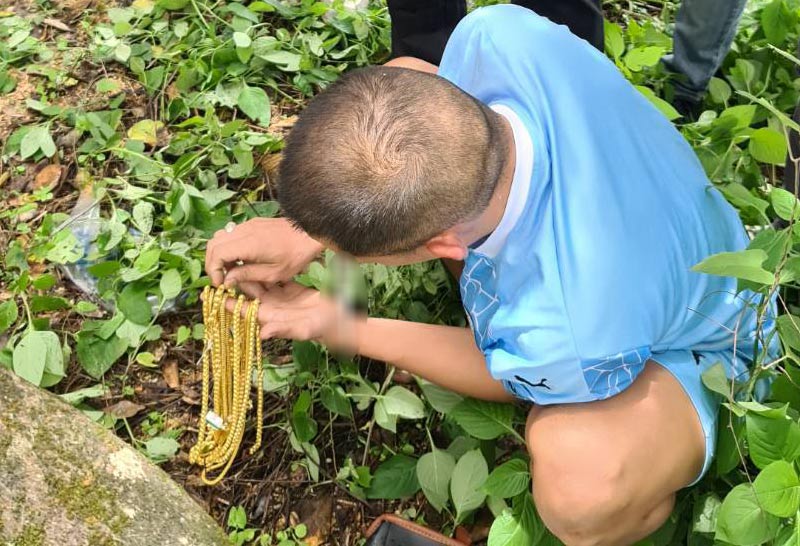 โดยเจ้าหน้าที่ตามแกะรอยไปจับกุมได้คาบ้านพัก ต.ควนลัง อ.หาดใหญ่ จ.สงขลา และจากการสอบสวนก็ยอมรับสารภาพแต่โดยดี พร้อมนำตำรวจไปขุดสร้อยคอทองคำ ที่ใส่ไว้ในกระเป๋าสะพายและฟังดินไว้หลังบ้าน พร้อมสร้อยคอทองคำ ที่อยู่ในกระเป๋า จำนวน10 เส้น จากสร้อยคอทองคำ ที่ขโมยมา 14 เส้น ส่วนที่เหลือยังอยู่ระหว่างการสอบสวน