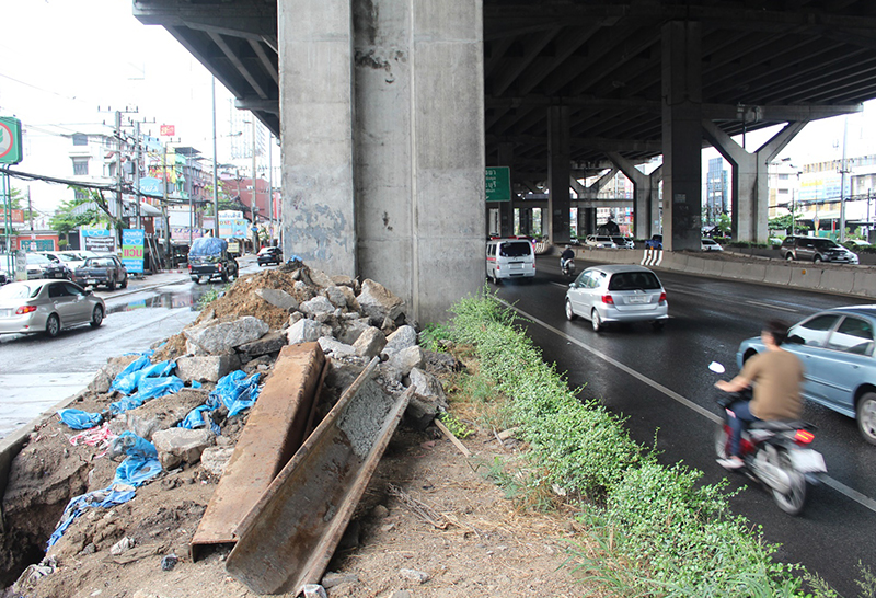 ผู้สื่อข่าวได้เดินทางไปยังที่เกิดเหตุพบถนนดังกล่าวเกิดการทรุดตัวและมีหลุมขนาดใหญ่ความลึกประมาณเกือบ 2 เมตร 2 จุด จากการเปิดเผยของนาย บัญญัติ แสนบุตร อายุ 63 ปี อาชีพขับวินจักรยานยนต์รับจ้าง ได้กล่าวว่า หลุมนี้เกิดขึ้นตอนฝนตนเมื่อช่วงเย็นที่ผ่านมา เพราะเมื่อวานก็ยังไม่เป็นอะไร ก็อยากจะฝากให้ ผู้ที่รับผิดชอบทำตรงนี้ทำให้ดีๆ เพื่อความปลอดภัยของประชาชนที่ขับรถผ่านไปผ่านมา แต่ก็โชคดีเหตุที่เกิดช่วงกลางวัน หากเป็นกลางคืนก็จะมีโอกาสเกิดอุบัติเหตุได้ เพราะในระหว่างที่ดินทรุดตัวนั้นตัวเองได้วิ่งมาเอากรวยมากั้น เพื่อป้องกันการเกิดอุบัติเหตุ