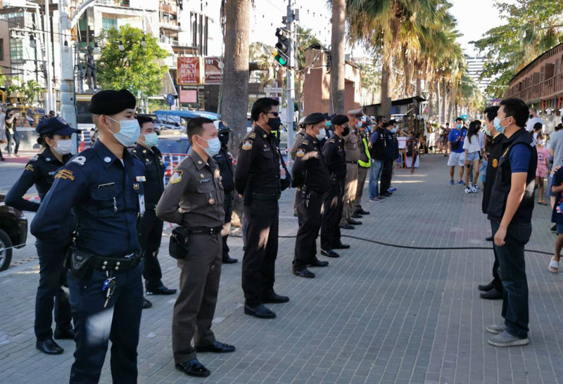 เมืองพัทยา สนธิกำลังปกครองตำรวจตรวจเข้มห้ามดื่มสุรา ชายหาด ป้องกันแพร่ระบาดโควิด-19
