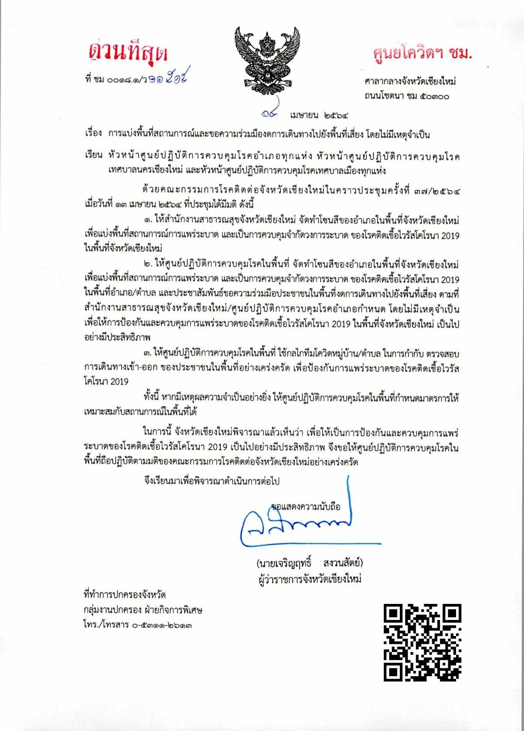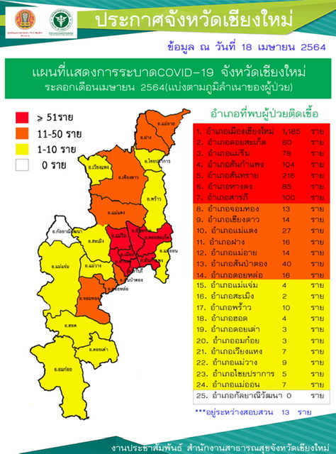 เชียงใหม่เผยตัวเลขผู้ติดเชื้อโซนสีแดง7อำเภอ